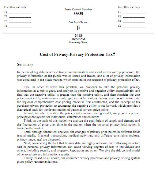公司太阳成集团tyc5392015级公共事业管理专业屈书宇、张如意两位同学在公司胡凡老师指导下,于2018年2月8日至2月12日参加2018年度美国老员工数学建模竞赛(MCM, Mathematical Contest In Modeling; ICM, Interdisciplinary Contest In Modeling)并荣获H奖(二等奖)。该竞赛由美国数学及其应用联合会主办,是唯一的国际性数学建模竞赛,也是世界范围内最具影响力的数学建模竞赛。经过4天激烈的角逐,团队以其不懈的努力,最终获奖,这也是公司员工首次获得数学建模类国际性竞赛奖项。
