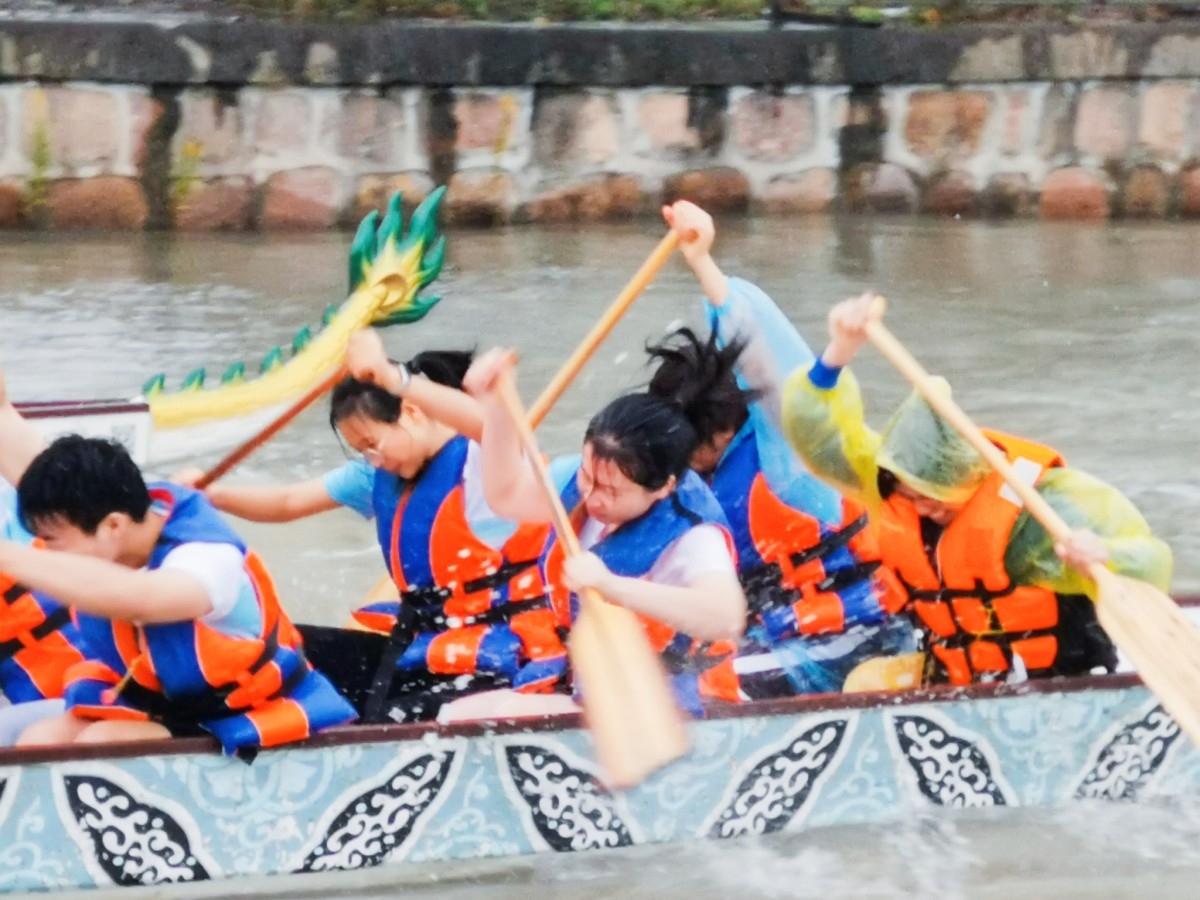 龙舟是一项集体运动,一个人的能力出众并不能决定一条船的胜负,只有每位队员齐心协力,整齐划一才能让我们的龙舟获得最大的推动力,从而乘风波浪,逆流而上。虽然我们的天河队是临时组起来的,队员有老师,有现役队员,还有刚跟训不久的新生,参差不齐的水平却能在短短一次训练中迅速磨合,成为一个整体冲向终点,离不开每位队员的集体意识,团结精神。最后还要感谢龙舟队老师的指导和志愿者“小杏仁”们的支持和帮助,也希望队员们在未来可以一直怀揣合作精神,在各自的生活学习工作中乘风破浪!