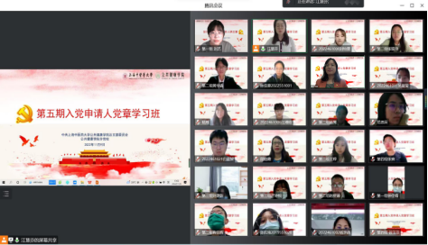 开班仪式在庄严神圣的国歌声中正式拉开帷幕。开班仪式由江慧芬老师主持,她首先介绍了本次学习班的学习目的、要求、内容以及考核方式,采取线上方式开展,分党校坚信设计教学方案,以集中授课、自学、小组讨论、主题研讨、撰写思想汇报等多种形式结合,帮助入党申请人熟悉党章,端正入党动机。