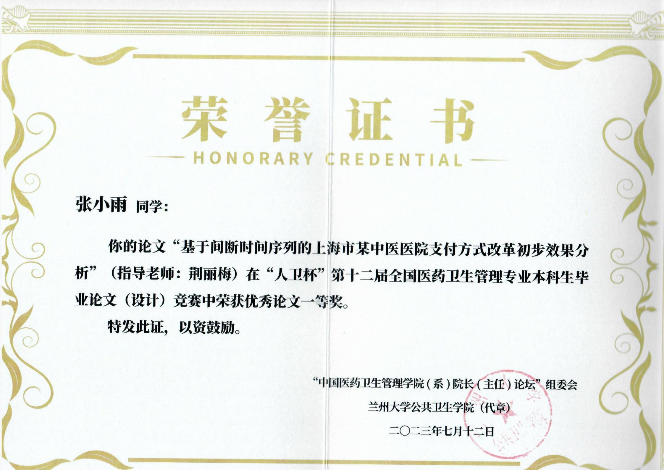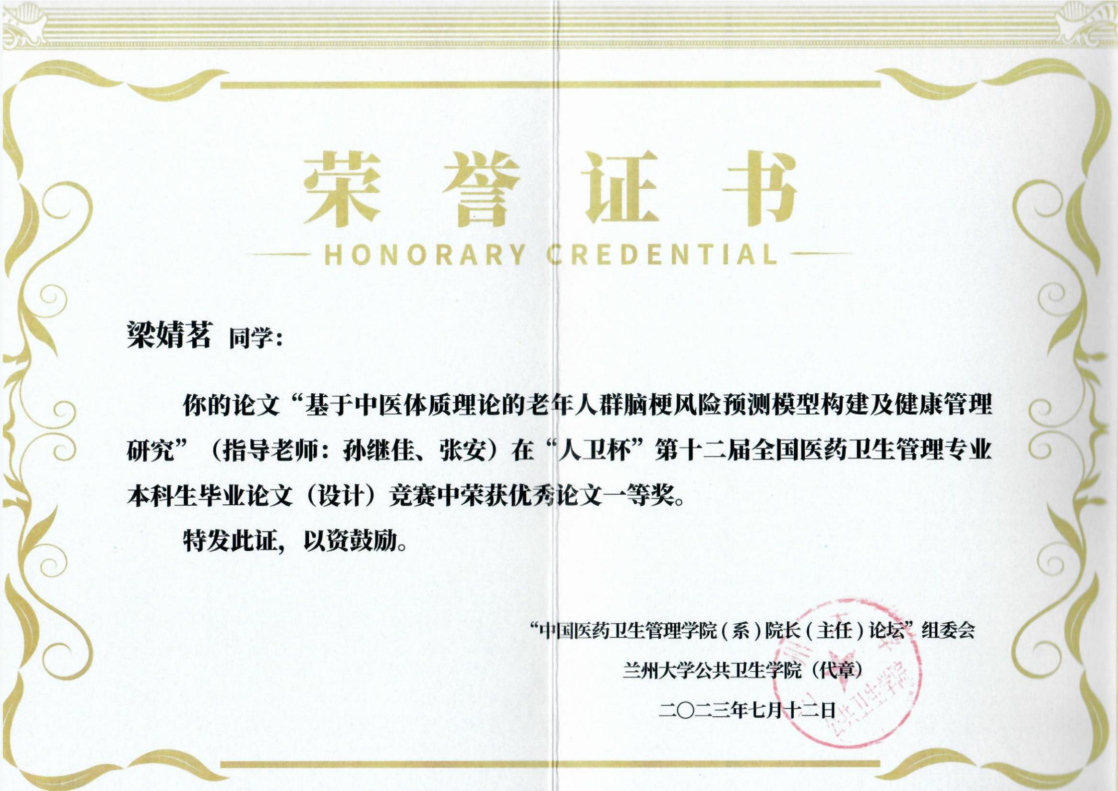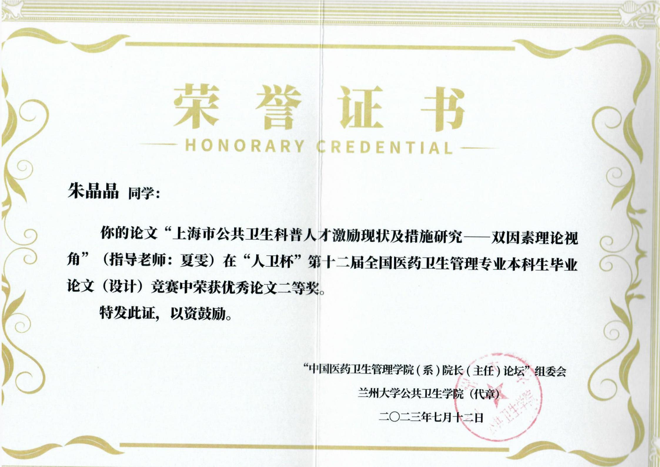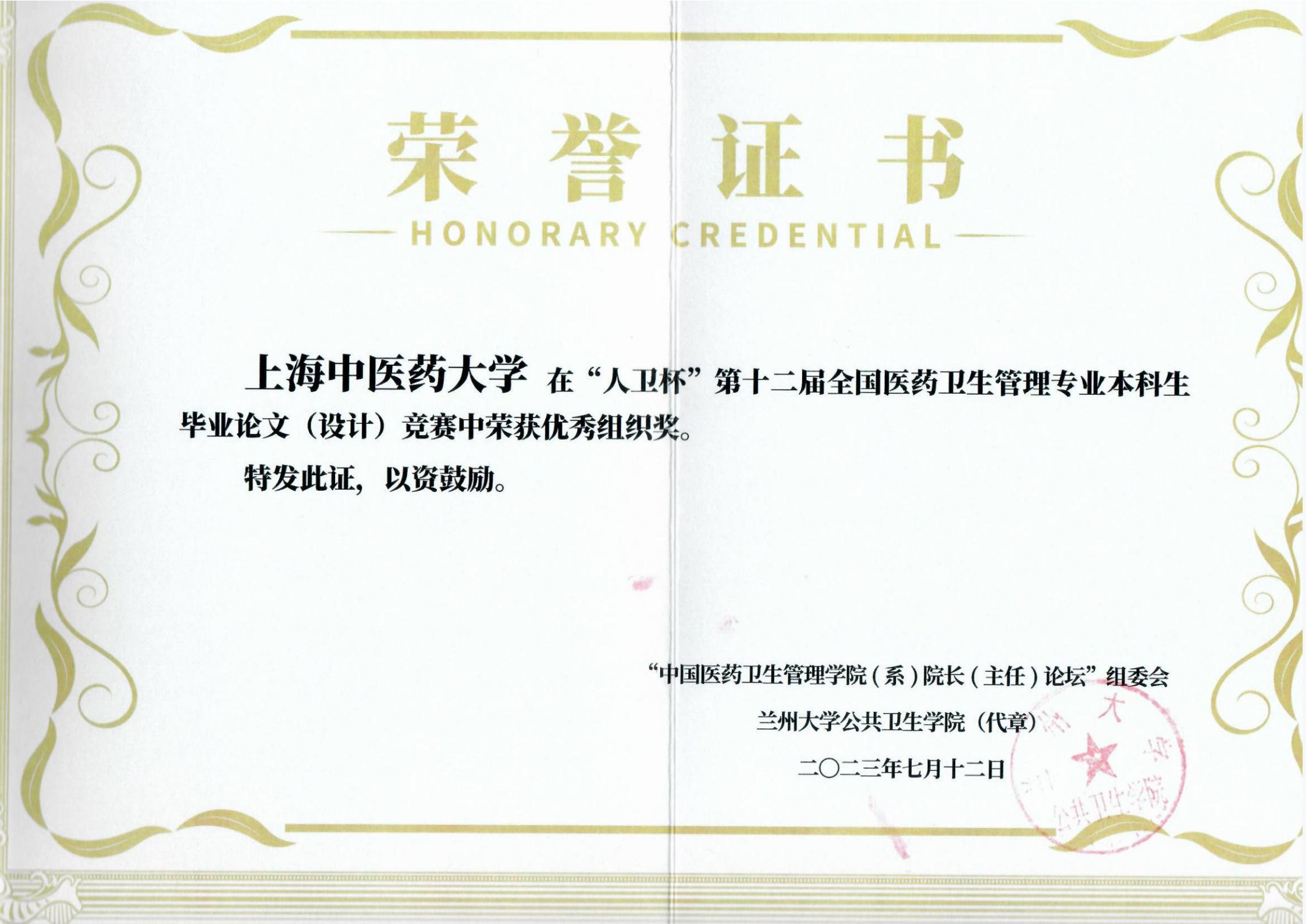 太阳成集团tyc539高度重视本项赛事,从员工毕业设计选题、实施、毕业论文答辩均精心指导,严格遴选。近几年,公司公共事业管理专业本科毕业论文多次在大赛中取得优秀成绩。本次毕业生论文竞赛获奖是对公司公共事业管理专业本科教学质量的肯定,公司将进一步加强公共事业管理专业内涵建设,培养高素质具有中医特色的医药卫生管理人才。
