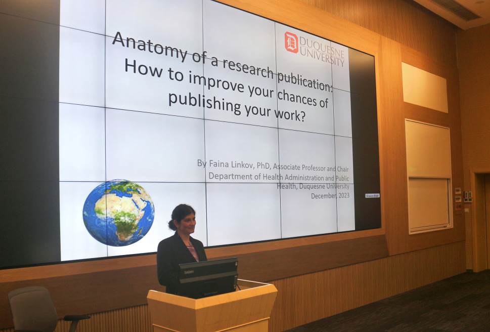 12月12日和13日下午,公司邀请美国杜肯大学兰戈斯健康科学公司卫生管理和公共卫生系副教授兼系主任、匹兹堡大学医公司兼职教授Faina Linkov来公司为师生进行学术讲座。
