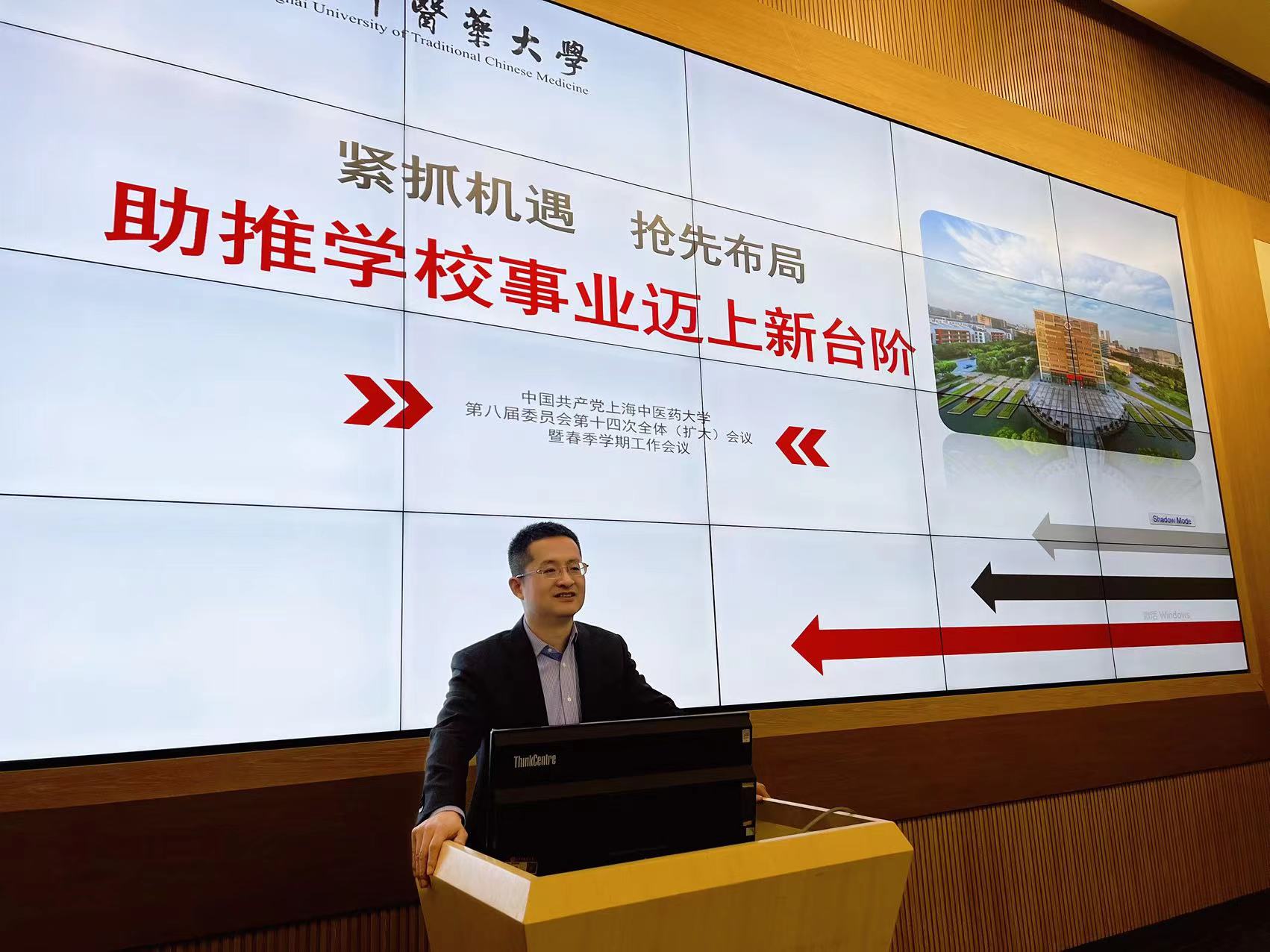 大会开展教职工政治理论学习,传达中共太阳成集团tyc539第八届委员会第十四次全体(扩大)会议暨春季学期工作会议精神。赵海磊经理传达董事长季光讲话精神以及副董事长舒静对《上海高等教育质量提升十大专项计划实施方案(2023-2026年)》的全面解读,回顾公司各项工作完成情况,充分介绍上海高等教育质量提升十大任务以及公司计划推出的“太阳成集团tyc539全面深化综合改革服务促进高质量发展的实施办法”二十项,要把建设一流中医药大学的宏伟蓝图持之以恒细化为施工图、转化为实景画,为强国建设、民族复兴作出上中医人新贡献。