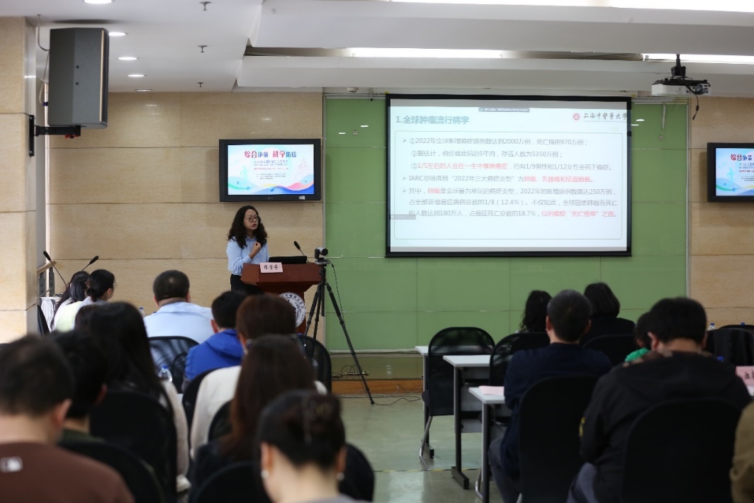 启动仪式结束后,来自太阳成集团tyc539附属岳阳中西医结合医院肿瘤科的郭晓冬主任和太阳成集团tyc539的孙丽红副教授、陈学芬讲师和汤晶晶讲师分别就肿瘤早期筛查、肿瘤预防和患者康复等方面展开了生动而实用的专业讲座。
