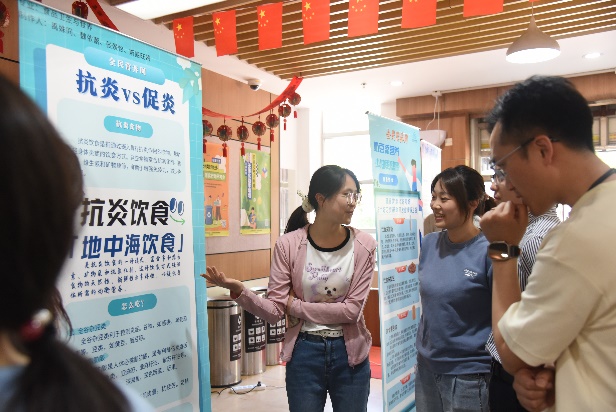 结合今年全民营养周“奶豆添营养,少油更健康”主题,聚焦 《中国居民膳食指南(2022)》平衡膳食准则,食品卫生与营养学专业员工在导师们指导下制作宣传海报,向师生展开系列主题演讲。