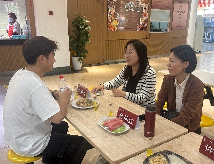 “一叠花生米有多少含油量?”“一份蛋炒饭里有多少油?”老师们向前来用餐的师生提倡“增豆、加奶、减油”,引导师生合理搭配日常膳食,养成良好饮食习惯和运动习惯,做自己健康的“第一责任人”。