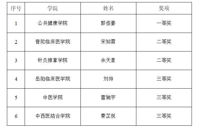 获奖名单